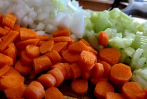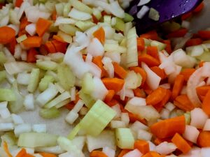 2. Add onions, carrots, and celery and cook until onions are translucent