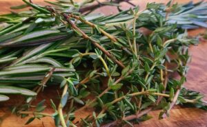 ¹Thyme has a strong, herbal flavor with a subtle hint of mint and a slight sweetness. It’s also described as having earthy, floral, and even peppery notes Source: https://www.thespicehouse.com/blogs/news/thyme-substitute